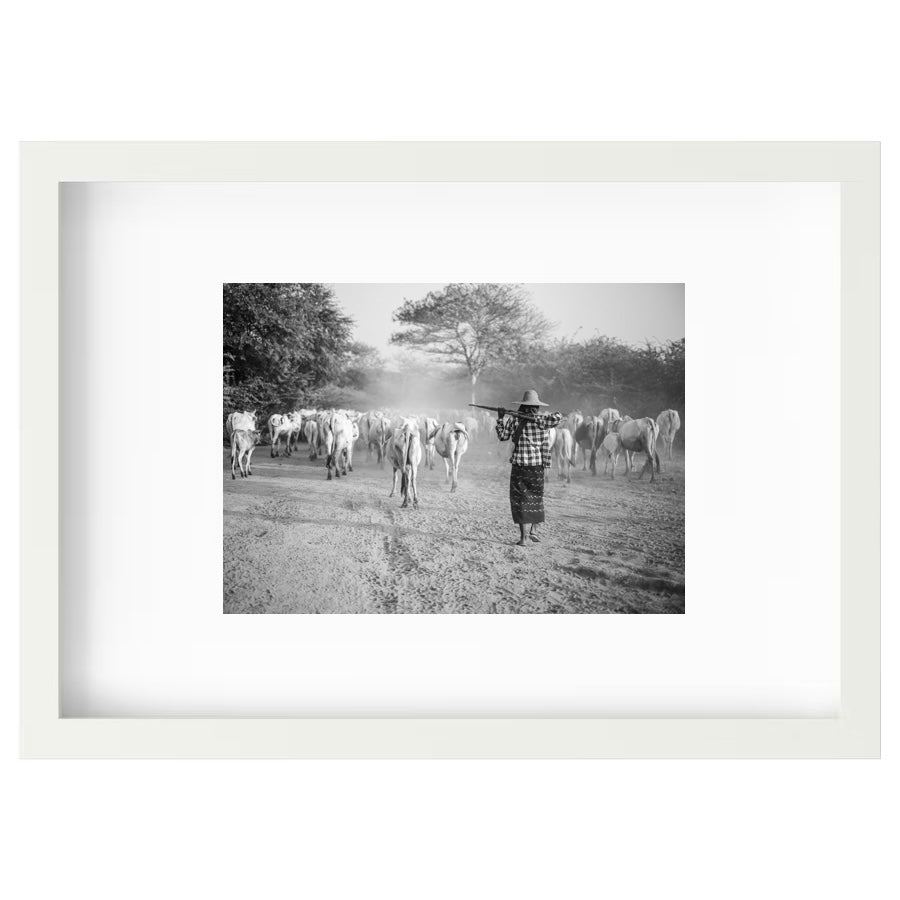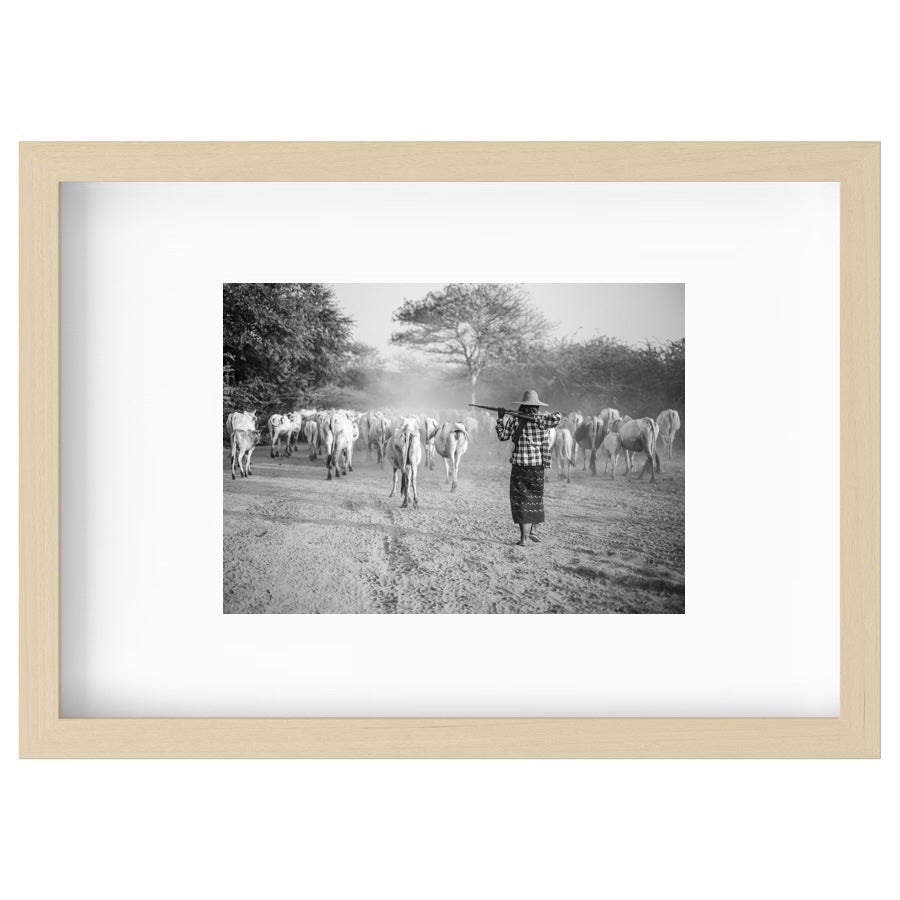 I was privileged to have visited Bagan, Myanmar before the recent civil war. The ancient city was full of temples, providing for a magnificent sight at any vantage point. As we wandered around, locals were going about their daily lives around us - kids playing amongst themselves, and farmers tending to livestock. At dusk, we encountered a herd and I quickly whipped out my camera to capture this beautiful scene (that I still remember to this day).
